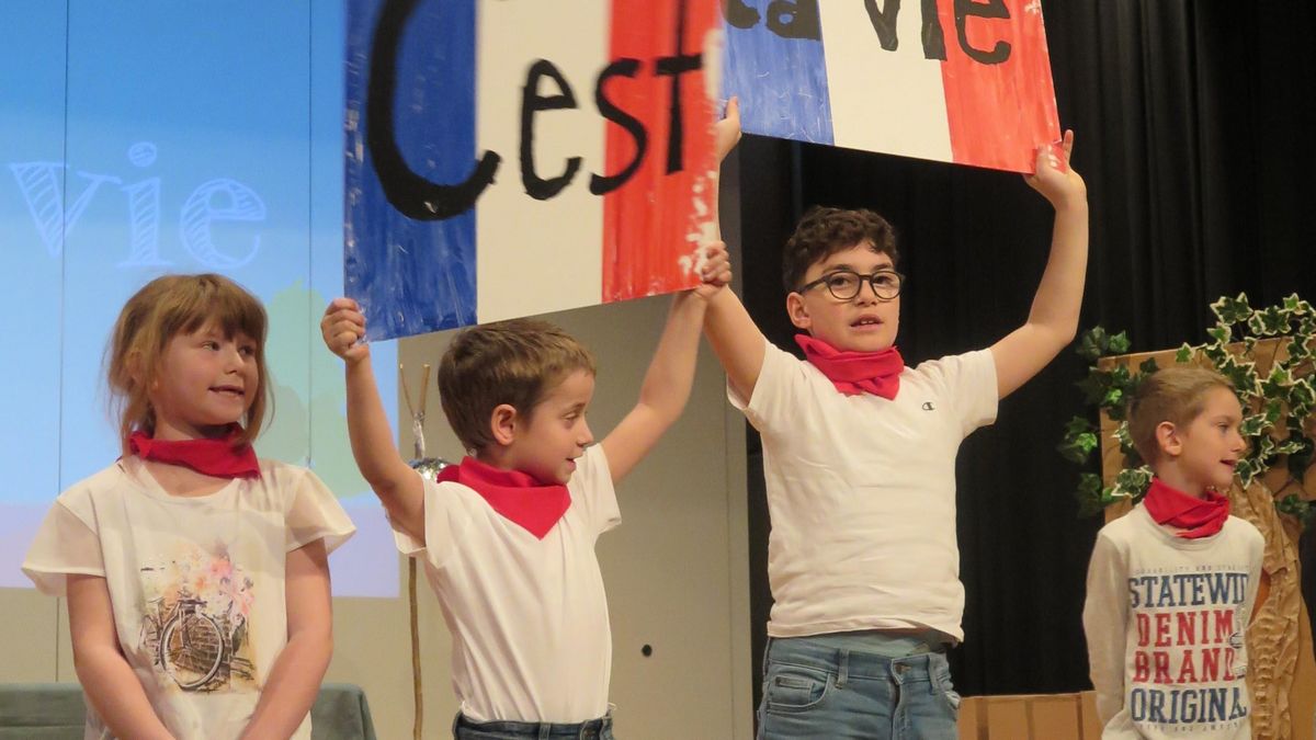 Endlich war es so weit: Nervös, aber voller Stolz warteten die Kinder hinter der Bühne auf ihren Einsatz. Gemeinsam mit der kleinen Eule machten sie sich dann auf eine musikalische Reise quer durch Europa. Unterwegs begegnete die Eule unterschiedlichen Tieren, Musikrichtungen und Sprachen und zeigte dem Publikum, wie vielfältig der Klang Europas ist. Jede Klasse führte die Eule in ein neues Land ein und brachte ihr die jeweilige musikalische Kultur näher. So reiste die Eule im Tourbus von Deutschland über Frankreich weiter nach Spanien, Irland und Griechenland bis in die Türkei. Als krönender Abschluss führte sie die schwedische Hummel noch zum wunderschönen Midsommar-Fest, wo gemeinsam bis in den frühen Morgen gefeiert wurde.